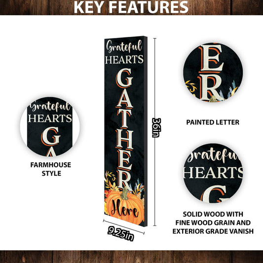 Fall Grateful Hearts Porch Sign | Rustic 36" Welcome Outdoor Decor
