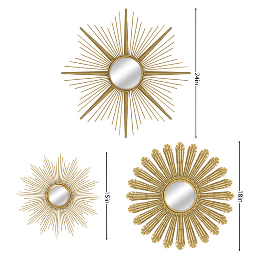 Sunburst Metal Wall Mirror Set of 3, Wall Mirrors for Room Decor & Home Dcor, Mirrors Sets Wall Dcor, Decorative Wall Mirrors Collection