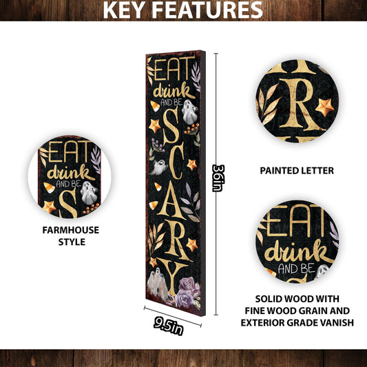 Spooky Chic Halloween Porch Sign | Modern Farmhouse "Eat, Drink, Be Scary"