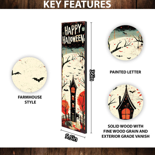 36" Vintage Happy Halloween Porch Sign - Rustic Welcome Outdoor Decor