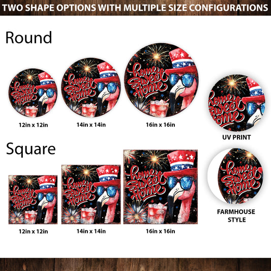 4th of July Flamingo & Fireworks Door Hanger | Multi Sizes | Patriotic Independence Day Front Door and Indoor Wall Decor