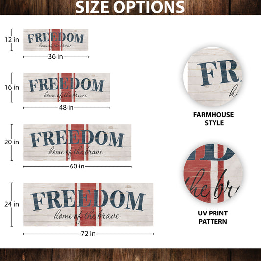 4th of July FREEDOM Sign | Home of the Brave Patriotic Wall Art | USA Independence Day Decor | Rustic Farmhouse Indoor Display | Multi Sizes