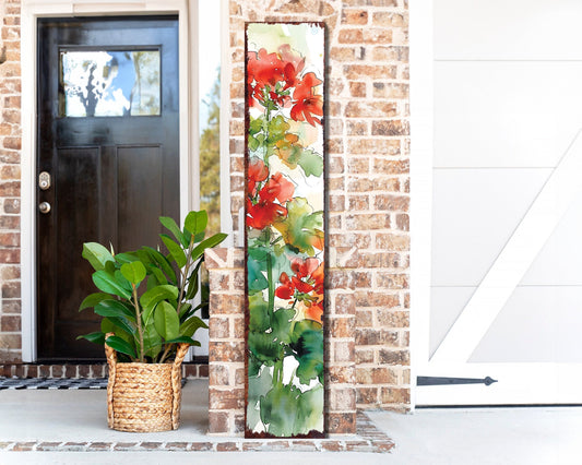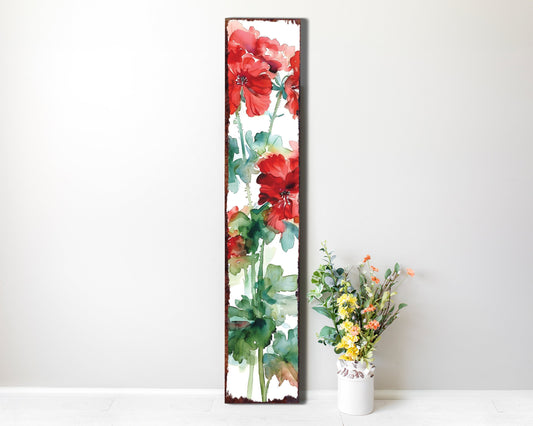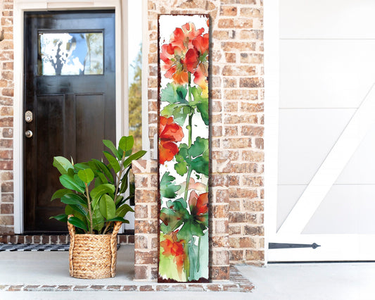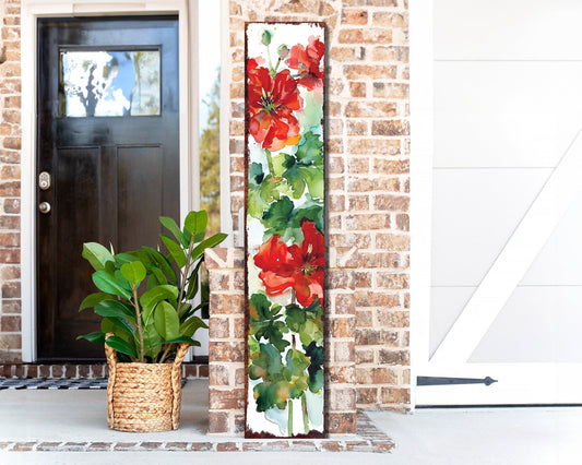 48in Summer Red Geraniums Wooden Porch Sign - Rustic Farmhouse Decor - Ideal for Door, Wall, Outdoor Entryway - UV Protected & Sealed