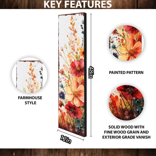 48in Wildflower Fall Porch Sign - Fall Front Porch Plaque with Harvest Decoration | Entryway Autumn Decor | Wood, UV Print | 48x12in