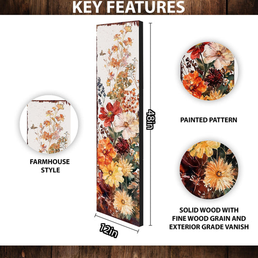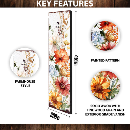 48in Wildflower Fall Porch Sign - Front Porch Fall Plaque with Autumn Decoration | Entryway Fall Decor | Wood, UV Print | 48x12in