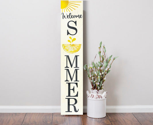48in Welcome Summer with a Lemon Pattern Wooden Porch Sign - Perfect for Front Porch Decor and Outdoor Parties | Handmade from High-Quality