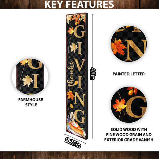 48in Thanksgiving Fall Porch Sign - Front Porch Fall Welcome Sign with Vintage Autumn Decoration, Rustic Thanksgiving Fall Decor for Outdoor