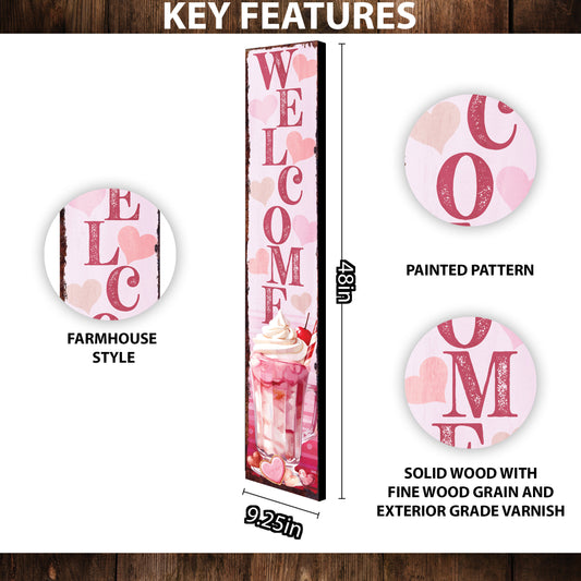 48in ‘Welcome To Drink Sugar Coffee’ Valentine’s Day Porch Sign | Front Porch Valentine’s Welcome Sign | Romantic Entryway Decor