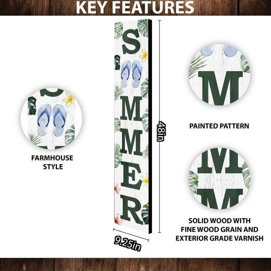 48in Tropical Summer Porch Sign with Palm Leaf & Slippers Pattern for Front Door, Wooden 48-inch Beach-Themed Entryway Decor