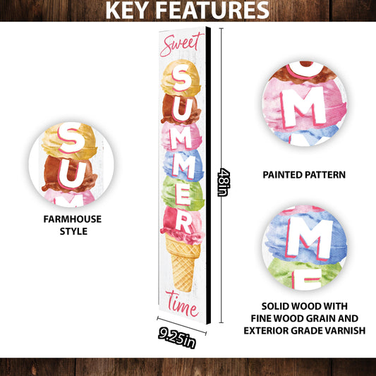 48in Sweet Summer Time Ice Cream Porch Sign - Wooden Front Door Wall Decor for Home - Fun & Colorful Seasonal Design
