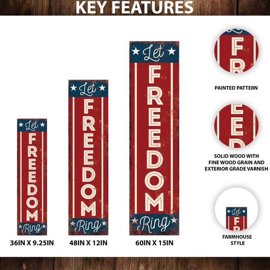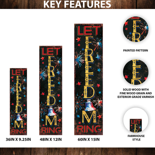 4th of July Let Freedom Ring Porch Sign Entryway Decor | UV Print | Front Porch Plaque | Seasonal Home Decor | 3 Sizes