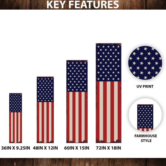 4th of July USA Flag Porch Sign | Vertical Patriotic Decor | Americana Front Porch Sign | UV Print | Multi Sizes for Entryway or Yard