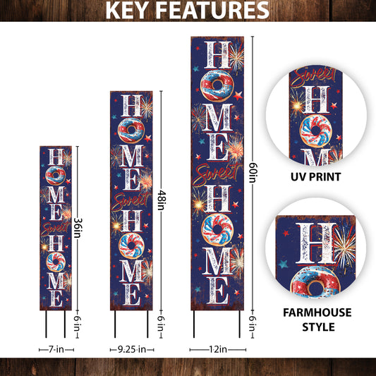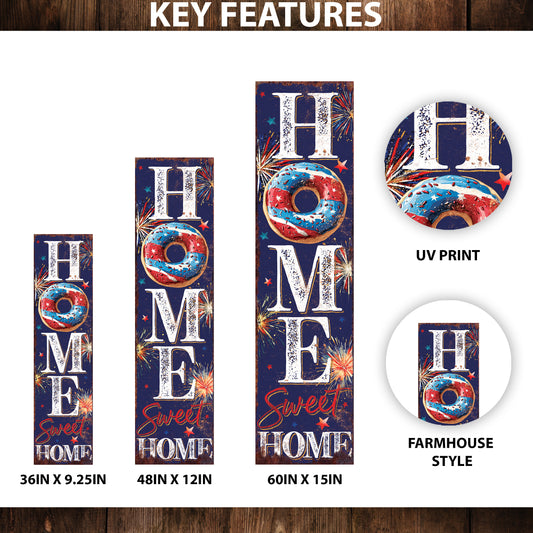 4th of July Home Sweet Home Porch Sign | Multi Sizes | Perfect Patriotic Yard & Independence Day Front Door Decor