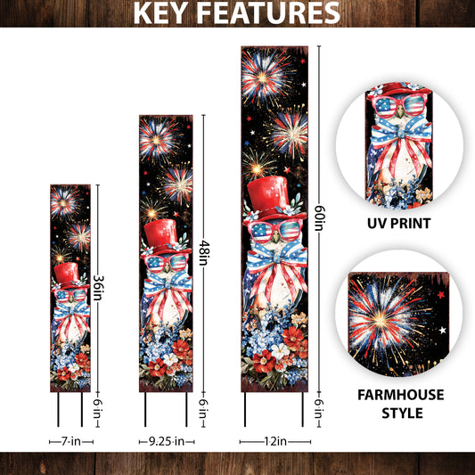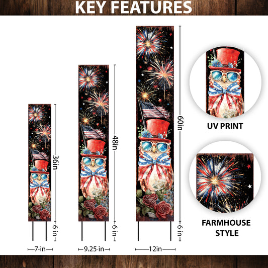 4th of July Owl & Fireworks Garden Stake | Multi Sizes | Perfect Patriotic Yard Independence Day Garden Decor | Outdoor Stake Sign