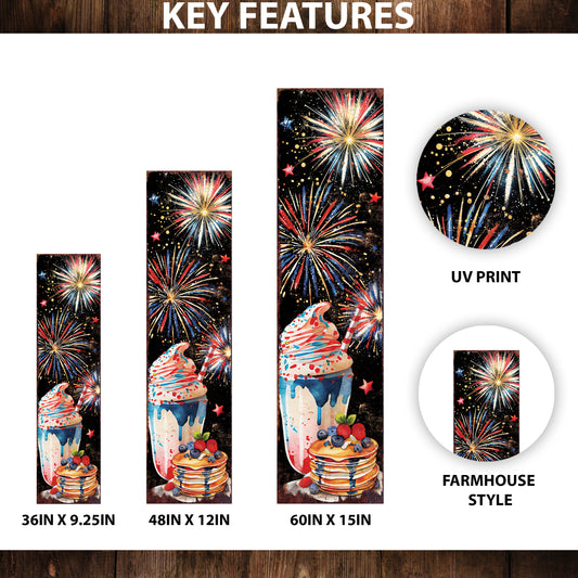 4th of July Porch Sign with Fireworks & Sweets | Patriotic Outdoor Decor | Multi Sizes | Perfect for Porch, Yard, or Front Door