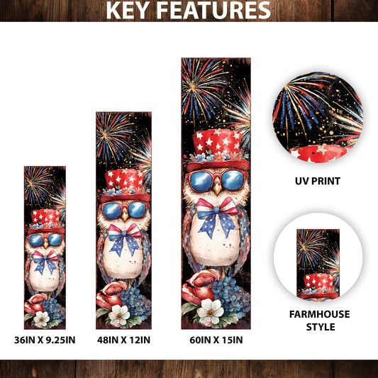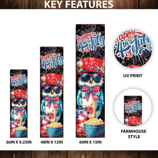 4th of July Porch Sign with Fireworks & Owl | Patriotic Outdoor Decor | Multi Sizes | Perfect for Porch, Yard, Garden, or Front Door