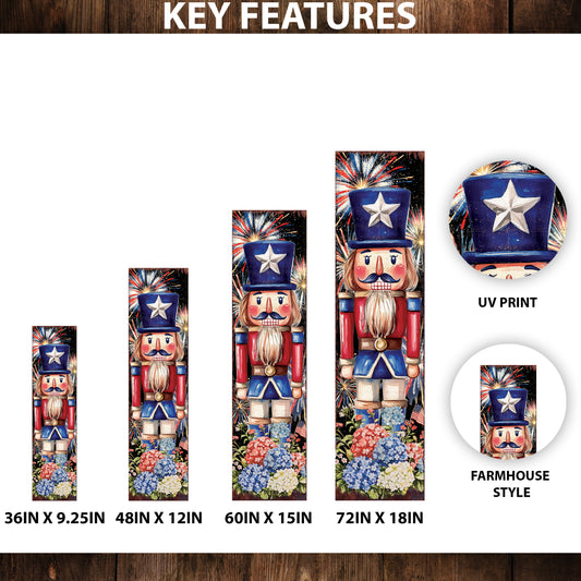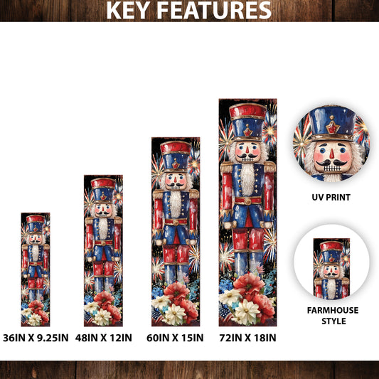 4th of July Porch Sign | Patriotic Nutcracker Outdoor Decor | Vintage Fireworks & Floral UV Print | Farmhouse Independence Day Decor