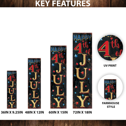 4th of July Porch Sign | Patriotic Front Door Decor | Farmhouse Vertical Wood Sign | Independence Day Outdoor Decoration | UV Print