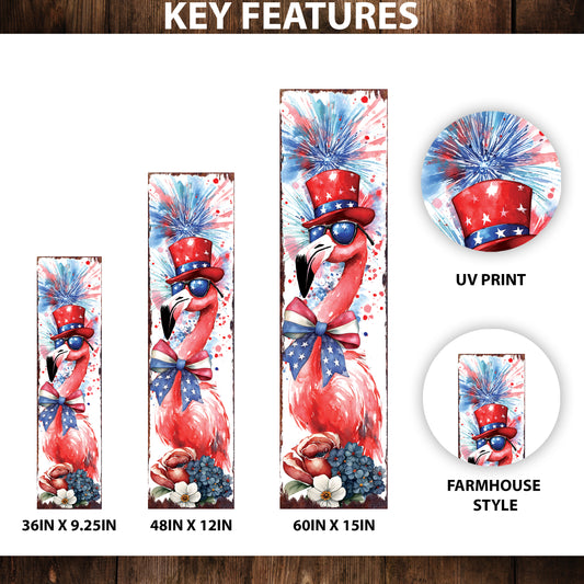4th of July Porch Sign with Fireworks & Flamingo | Patriotic Outdoor Decor | Multi Sizes | Perfect for Porch, Yard, Garden, or Front Door