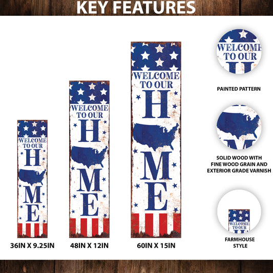 4th of July Welcome to Our Home Porch Sign Entryway Decor | UV Print | Front Porch Plaque | Seasonal Home Decor | 3 Sizes