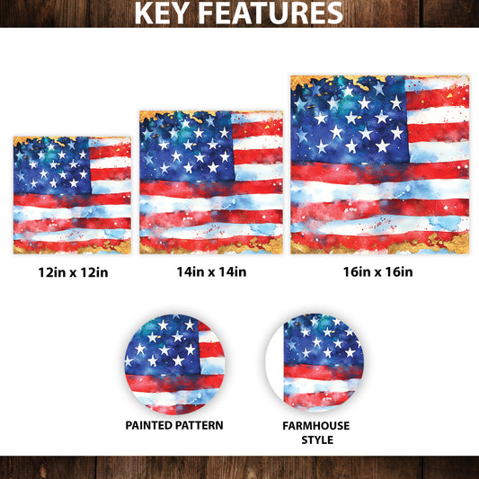 4th of July USA Flag Wall Decor Art | UV Print Canvas | Watercolor Paint Style Indoor Wall Art | 3 Sizes