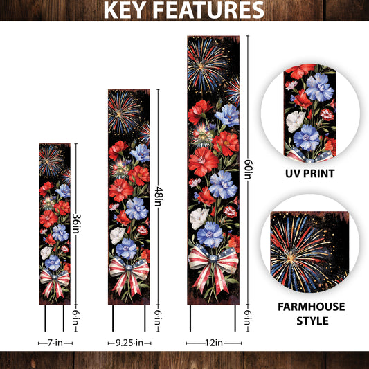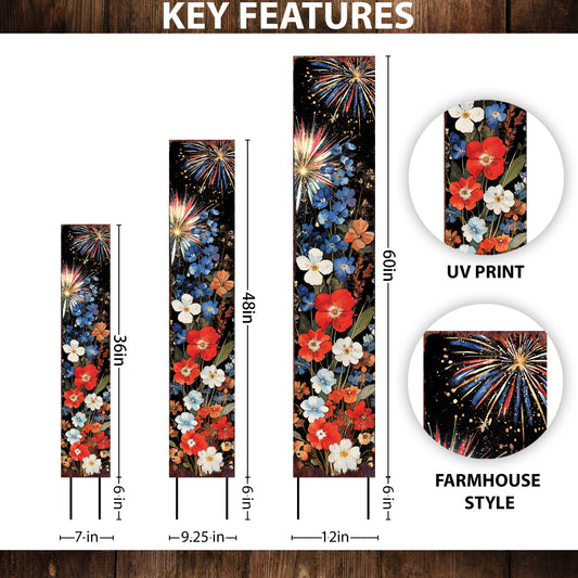 4th of July Wildflowers & Fireworks Garden Stake | Patriotic Outdoor Decor | Independence Day Yard Sign | Multiple Sizes