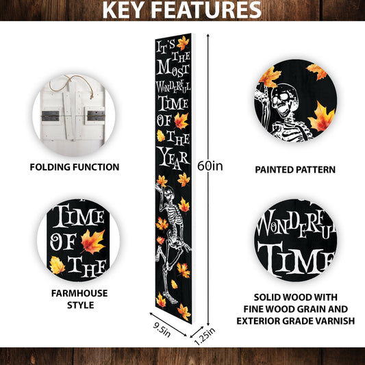 60in Dancing Skeleton Halloween Porch Sign - Front Porch Halloween Welcome Sign, Rustic Modern Farmhouse Entryway Board
