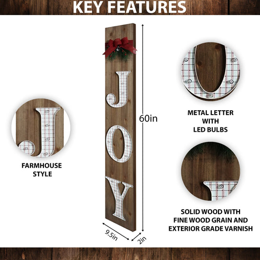 60" Pre-Lit LED JOY Christmas Sign | Rustic Farmhouse Indoor Outdoor Decor