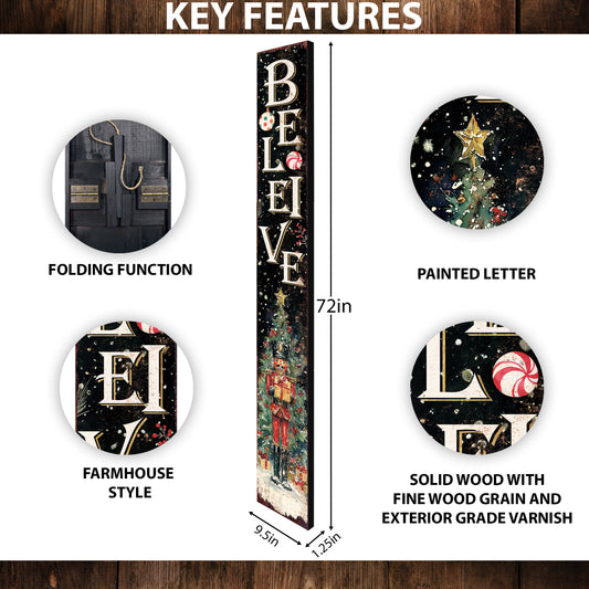 72" BELIEVE Watercolor Nutcracker Christmas Porch Sign | Holiday Decor