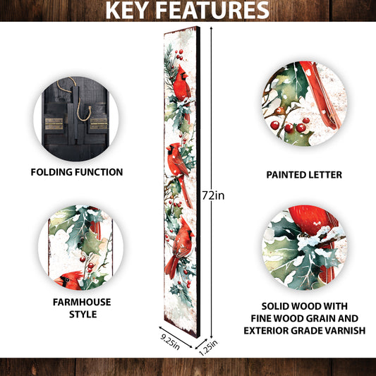 72" Merry Christmas Cardinal Watercolor Porch Sign | Outdoor Holiday Decor