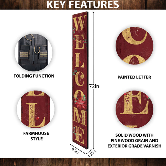 72" Red Welcome Christmas Porch Sign | Farmhouse Outdoor Holiday Decor Gift