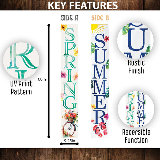 60in Spring Sign - Summer Porch Sign | Vintage Seasonal Decoration | Reversible Entryway Porch Board | Rustic Outdoor Welcome Sign