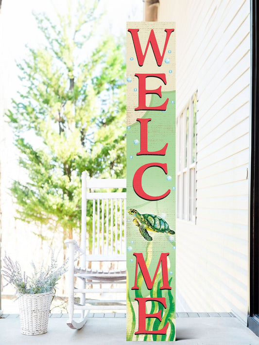 60in Summer Welcome Sign with Turtle Design | Front Door Porch Decor | Coastal Welcome Sign | Farmhouse Home Decorations