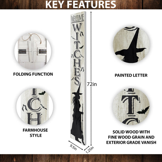 72-Inch "Welcome Witches" Wooden Halloween Sign - Spellbinding Front Door Decor for Porch, Entryway, and Spooky Season Festivities