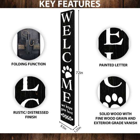 72in 'We Hope You Love Dogs' Black Porch Sign - Dog Lover Welcome Home Sign, Ideal for Dog House Decor, Perfect Everyday Porch Decor"
