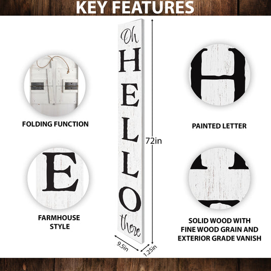 72in 'Oh Hello There' Welcome Porch Sign - Ideal Housewarming Gift for Families and Guests, Perfect Everyday Porch Decor