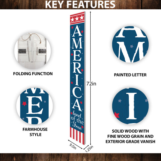 72in 4th of July America Land of the Free Sign | Patriotic Wooden Porch Decor | Vertical Stars & Stripes | Independence Day Outdoor Decor