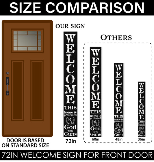72in 'This Home is Protected by God and Guns' | Foldable Wooden Front Door & Porch Sign | Bold Home Security Statement | Black