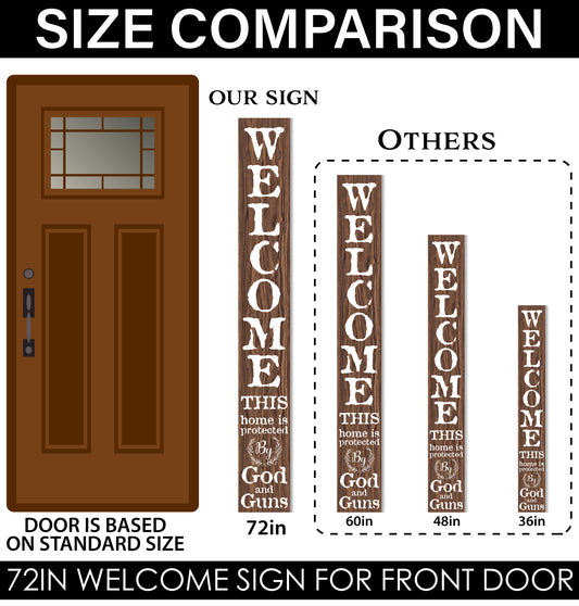 72in 'This Home is Protected by God and Guns' | Foldable Wooden Front Door & Porch Sign | Bold Home Security Statement | Brown