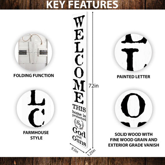 72in 'This Home is Protected by God and Guns' | Foldable Wooden Front Door & Porch Sign | Bold Home Security Statement | White