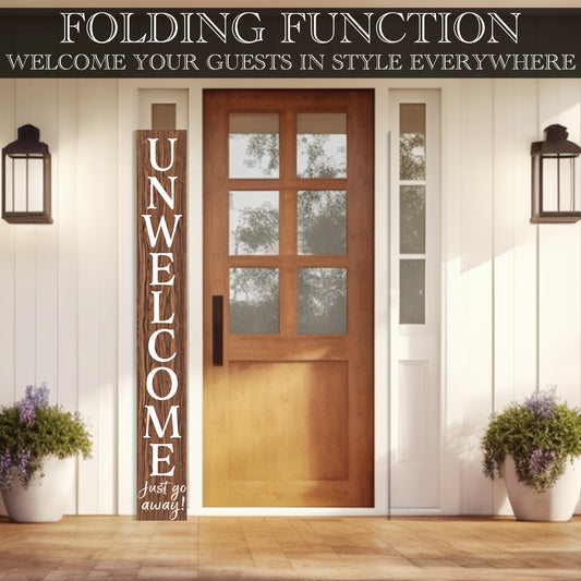 72in "Unwelcome Just Go Away" Brown Porch Sign - Tall Decor for Front Door or Porch Standing Decoration