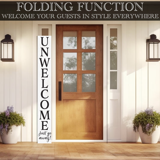 72in "Unwelcome Just Go Away" White Porch Sign - Tall Decor for Front Door or Porch Standing Decoration