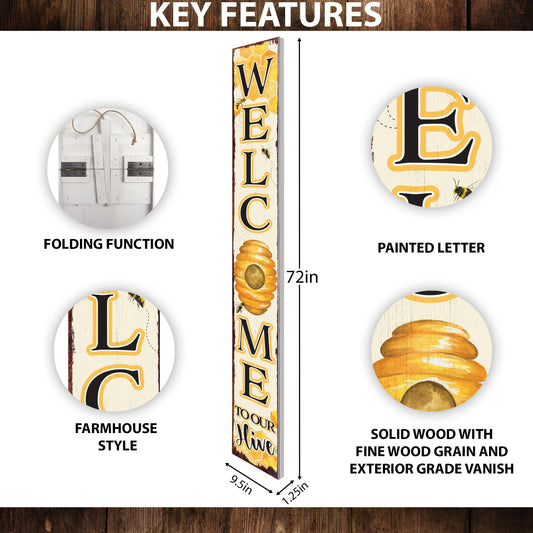 72in "Welcome to Our Hive" Summer Porch Sign | Bee-Themed Home Decor | Perfect for Living Room, Entryway, Mantle, Porch, Front Door