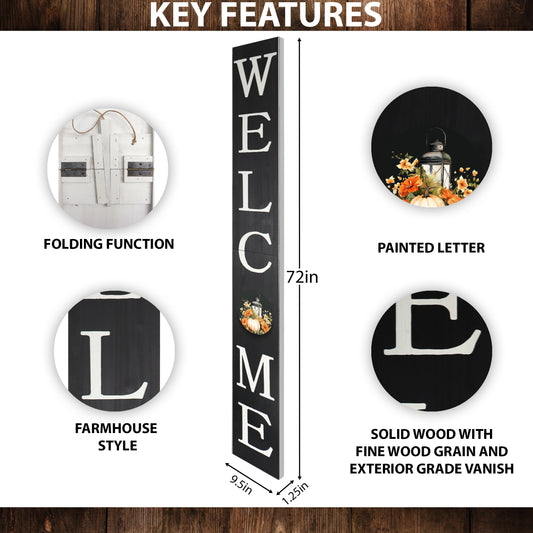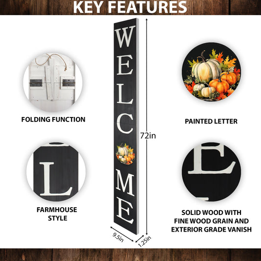 72in "Welcome" Fall Porch Sign with Pumpkins Design - Black Porch Board Decor for Front Door during Autumn and Thanksgiving Celebrations