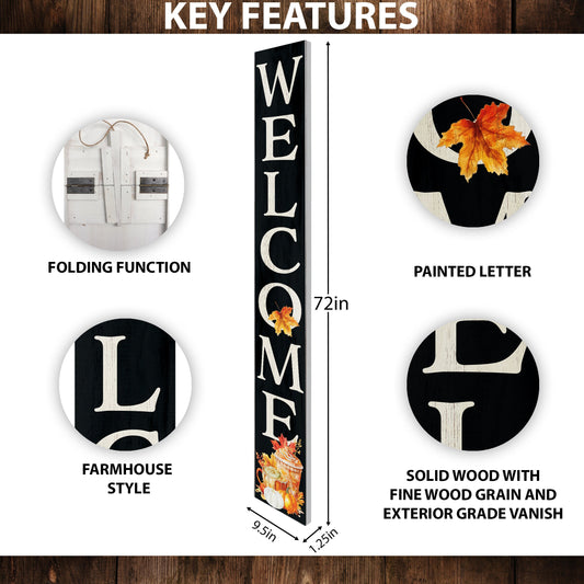 72in "Welcome" Fall Porch Sign with Fall Drink Design - Tall Porch Board Decor for Front Door during Autumn and Thanksgiving Celebrations