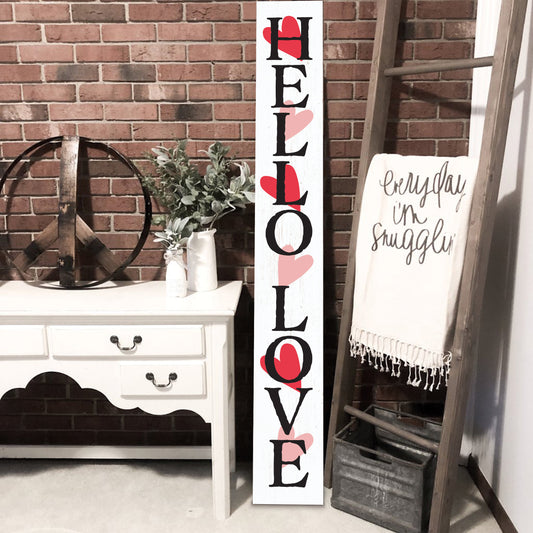 72in 'Hello Love' Valentine's Day Porch Sign, Rustic Modern Farmhouse Entryway Board, Front Porch Valentine's Decor