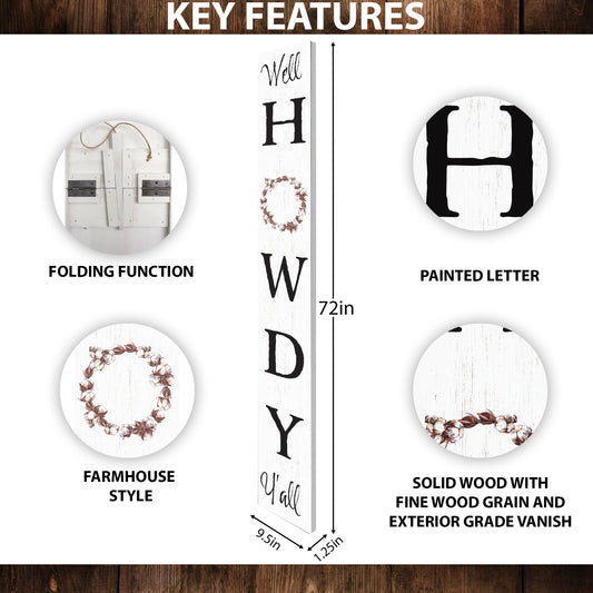 72IN Handcrafted Howdy Wood Sign - White Rustic Western Home Decor