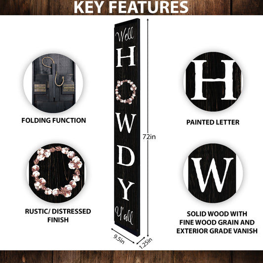 72IN Handcrafted Howdy Wood Sign - Rustic Black Western Home Decor
