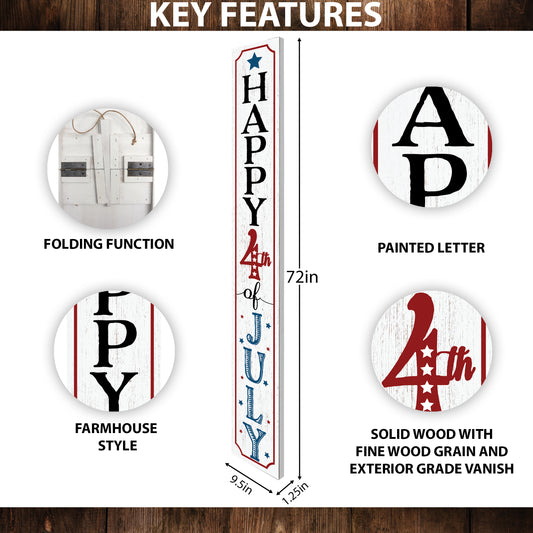 72in Happy 4th of July Sign | Patriotic Wooden Porch Decor | Farmhouse Decor for Porch | Independence Day Outdoor Decor