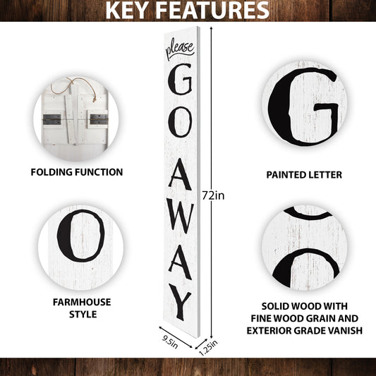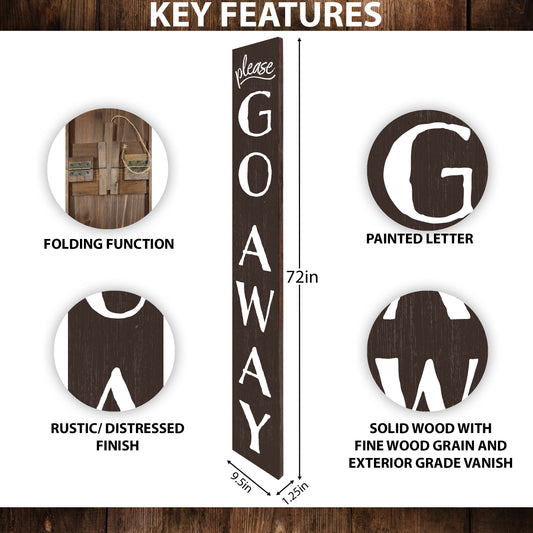 72in Go Away Sign for Porch, Wooden Brown Outdoor Decorations for Home Front Door